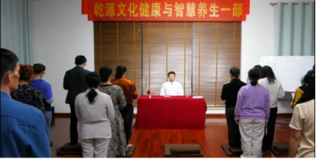 ▲家长带着孩子参加“乾源文化”打坐练功
